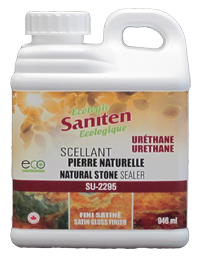 Scellant uréthane à base d'eau conçu pour protéger, rehausser les couleurs et laisser un fini satiné sur les pierres naturelles texturées.